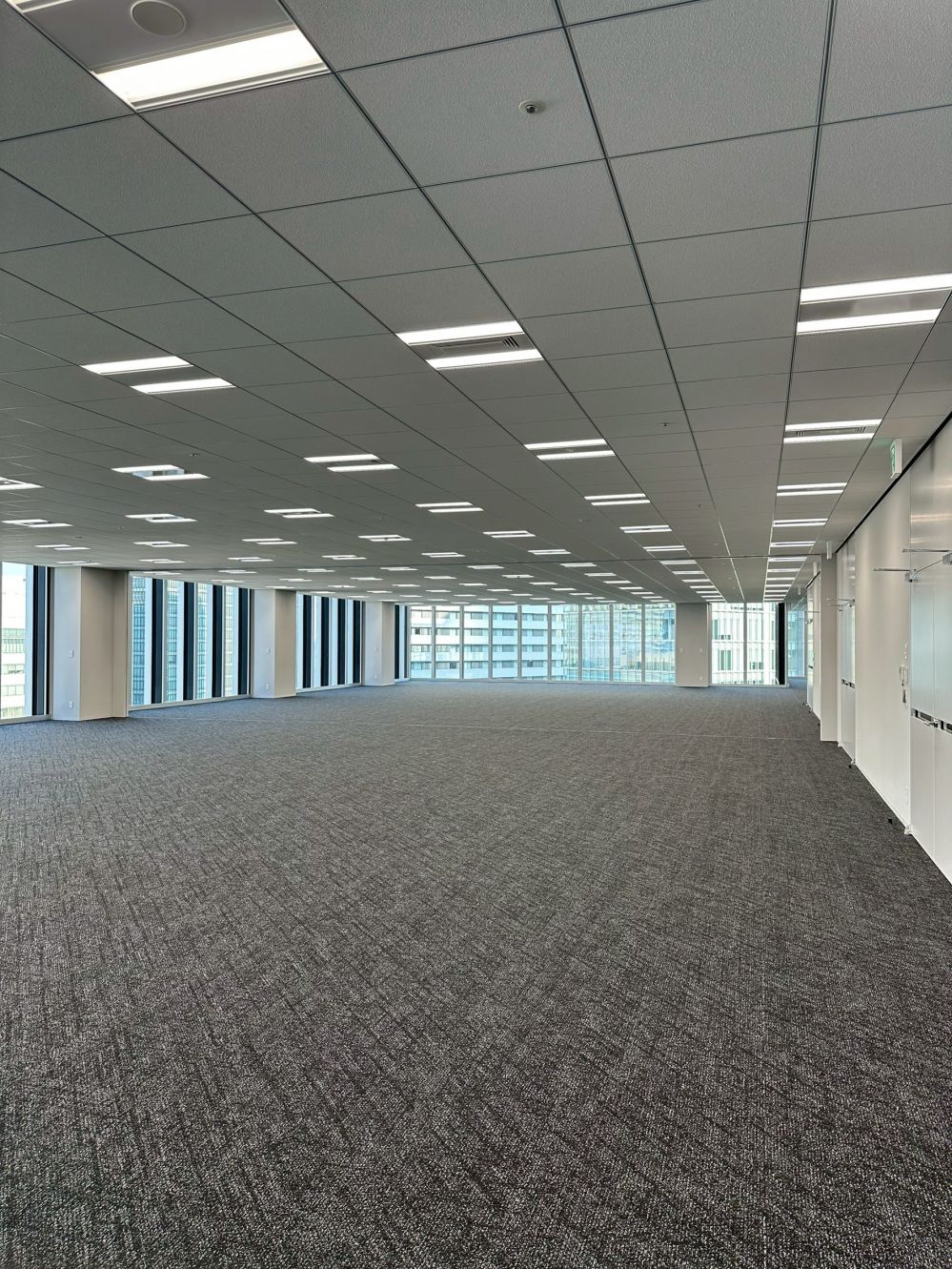辦公空間位於地上 11 至 27 層,單層面積約 4,000㎡,為西日本最大規模的基準樓層。無柱空間與高度彈性的規劃,最小可分割為約 130㎡,滿足不同類型企業需求。支援樓層位於 8、9 樓,提供多項員工專屬設施、15 間租用會議室與共享工作空間,完善商務功能。