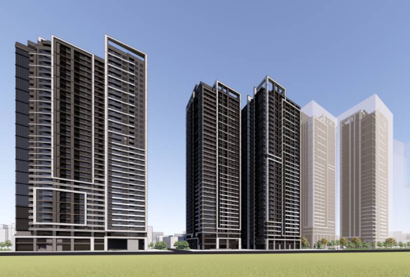 配合本更新單元周圍環境,呼應鄰近住宅與周邊自然地景,建築色系選擇以具有人文生活感的暖色系為主軸色調,並輔以簡潔俐落開窗,加上富有變化的雨遮飾板及格柵,謹慎處理立面與鄰近建築色彩之融合,藉由生氣蓬勃的綠化點綴量體,建築色系以寧靜、沉穩能烘托自然綠意的深色系,達到都市、社區、環境周邊顏色之協調。