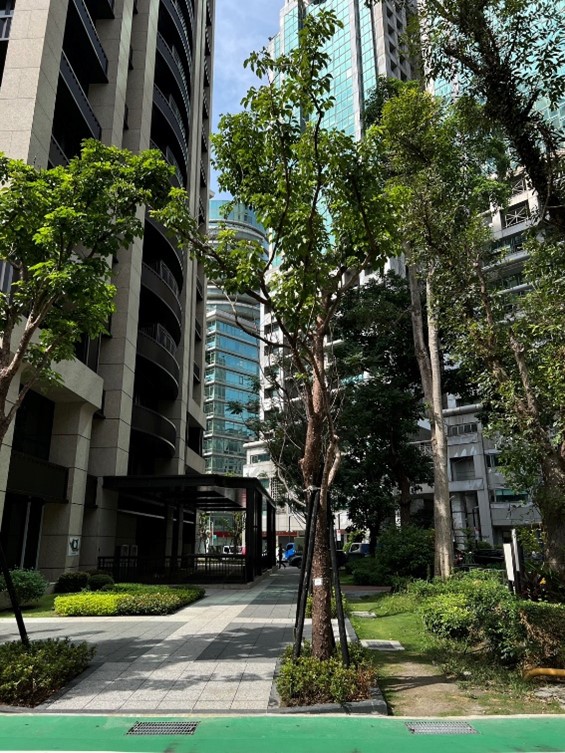 景觀設計上秉持「城市綠肺」的概念,於基地一樓大幅留設開放空間,並設置街角廣場,可作為鄰里間的交流空間。此外,將北側現有巷道納入規劃並辦理廢巷,讓本案基地可與安強公園無縫串聯。居民從自家樓下走出,即可透過規劃完善的人行步道直達公園。植栽配置更與公園原有樹木錯落呼應,四季更迭之間,街道隨著花木的變化而展現不同的風貌。