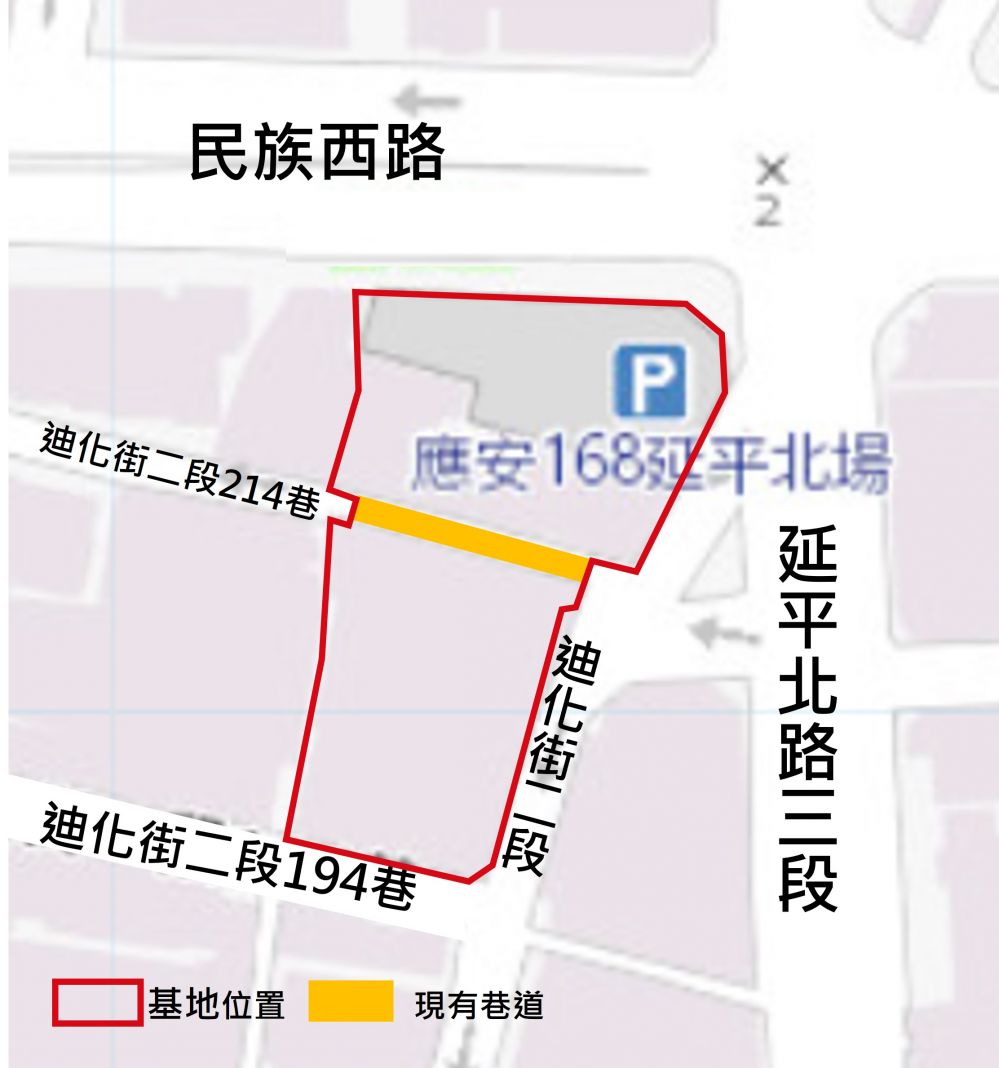 本案範圍內現有巷道迪化街二段214巷(範圍內為現有巷道、範圍外為計畫道路),因巷道狹小致使消防車輛無法通行,亦時常發生行人與機車擦撞之情形,除了危害當地居民生命安全,也因現有巷道橫跨基地,影響建築設計及使用效益,故本案原擬於都市更新程序中辦理巷道廢止,並於基地四周退縮留設人行步道及開放空間,以期提供行人友善的步行環境。
