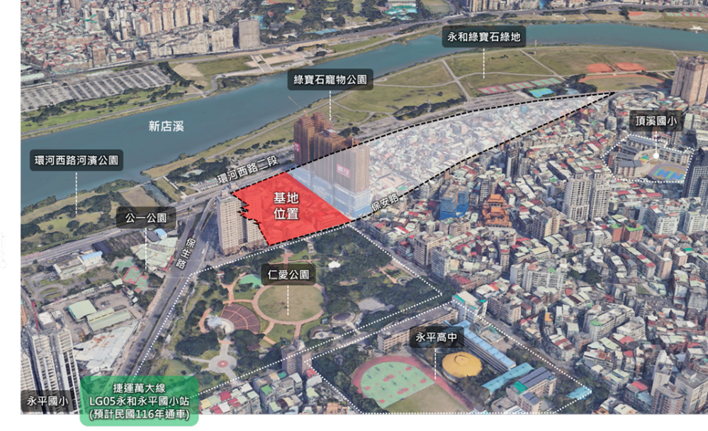 本案位於新北市永和地區,緊鄰新店溪及綠寶石河濱公園,周邊文教資源豐富,距未來的捷運萬大線永和永平國小站(預計2027年完工)、中和新蘆線頂溪站步行距離分別約6、15分鐘,坐擁雙捷運及充足的教育資源,實屬新北市優質住宅區域。新北市政府於2021年4月同意新北市住宅及都市更新中心擔任實施者(以下簡稱新北住都中心),後於今(2025)年3月3日進行「永和新生地(大陳地區)更新單元1都市更新案」最優申請人評選作業,順利由遠雄建設事業股份有限公司規劃構想獲得評審青睞,獲選為最優申請人,並於3月30日順利完成簽約,在今年6月完成事業計畫申請報核程序。